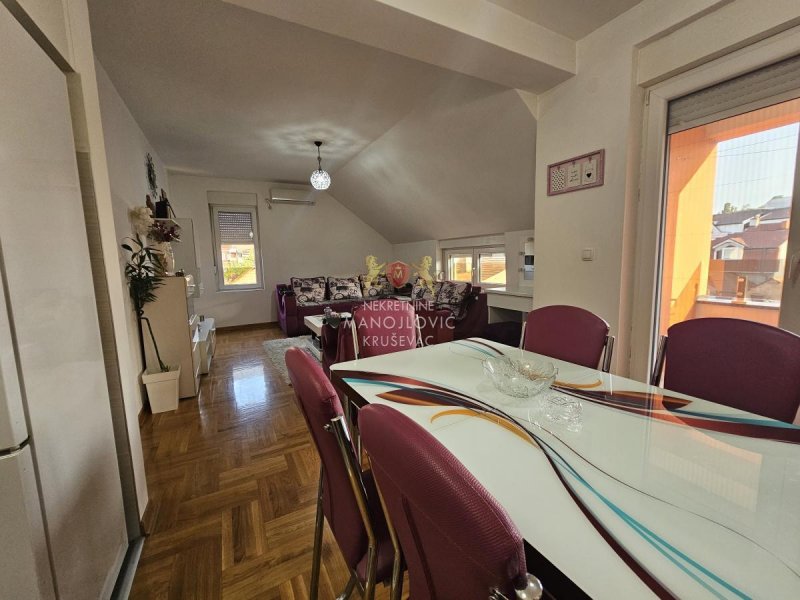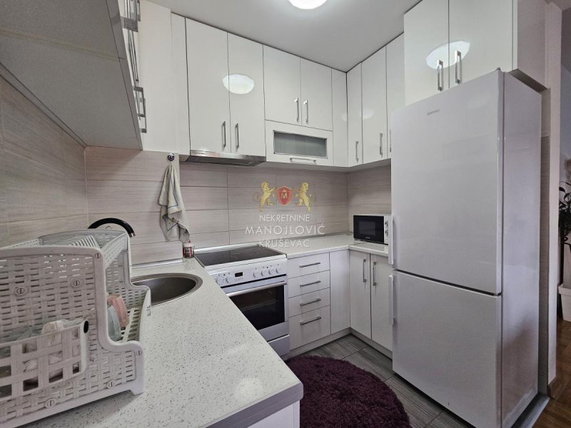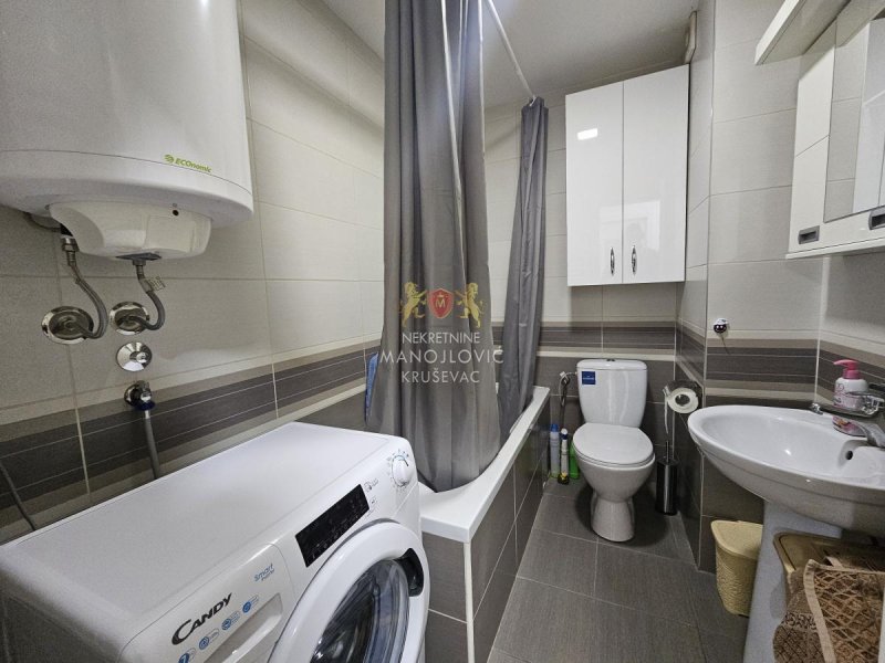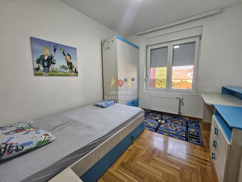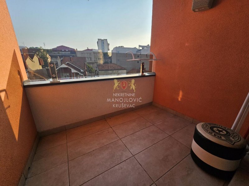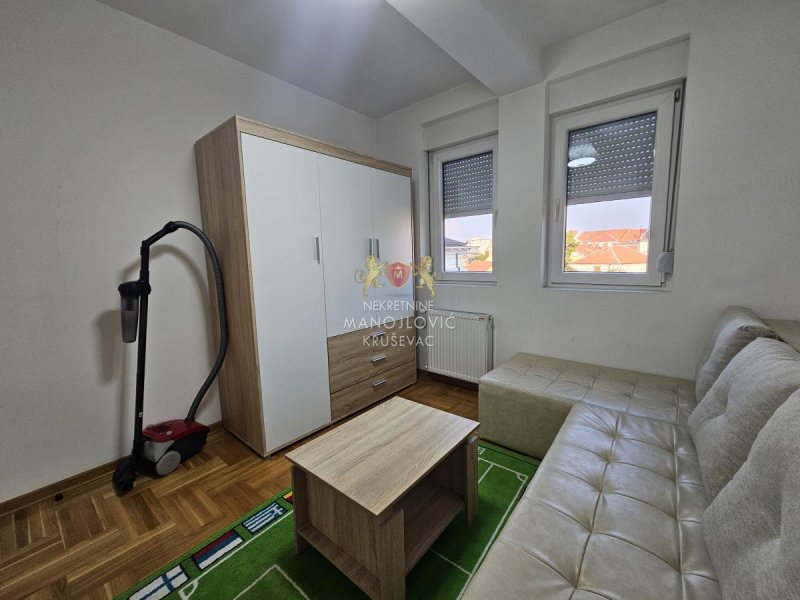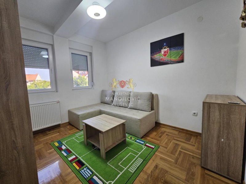 - Izdajemo dvoiposoban stan u novoj stambeno-poslovnoj zgradi, kompletno namešten. Zgrada se nalazi na fenomenalnoj lokaciji, u širem centru grada, između bolnice i stare pijace. Preko puta zgrade se nalazi osnvna škola Vuk Karadžić. Uz stan ide i garažno mesto u nivou ulice (nije podzemna garaža).