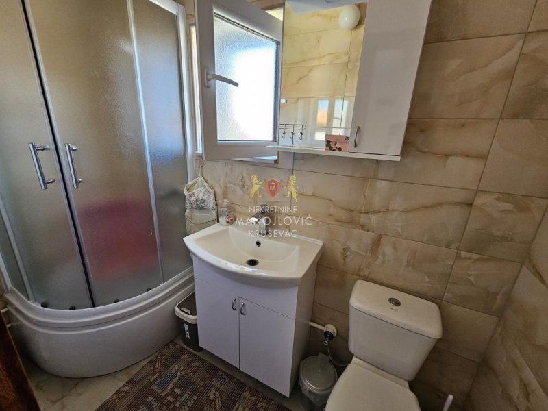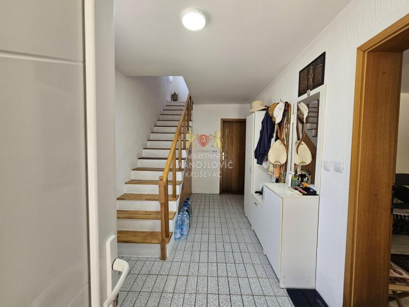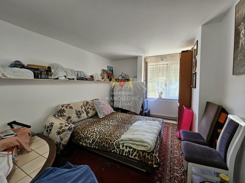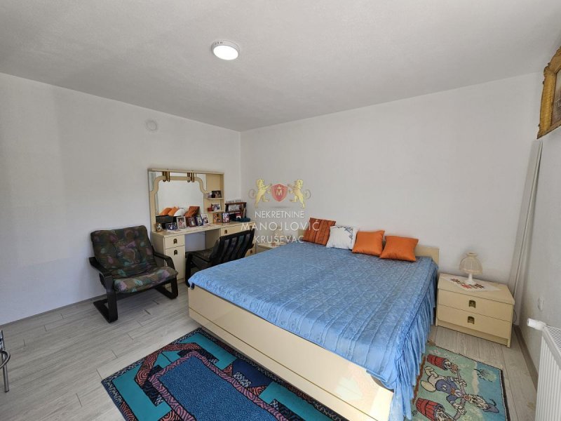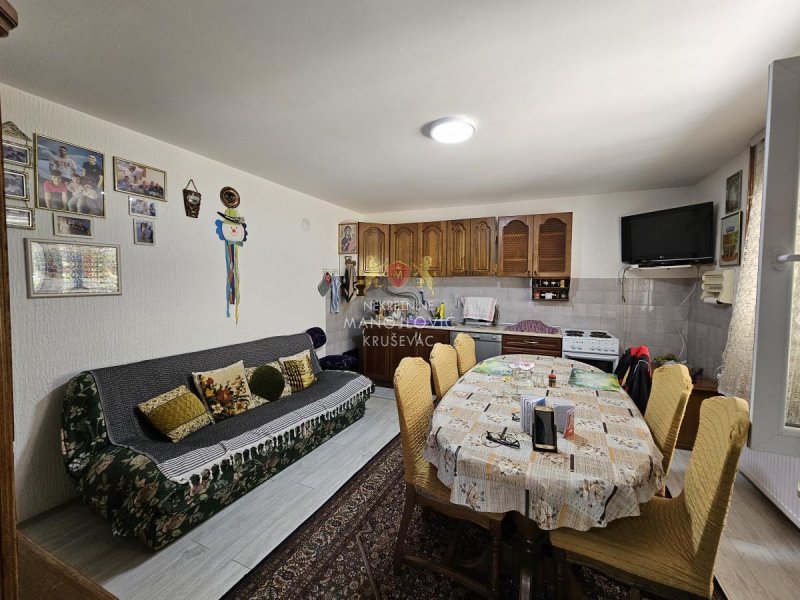 Lokacija je izuzetno praktična – preko puta se nalazi prodavnica, a sve što je potrebno za svakodnevni život dostupno je u neposrednoj blizini. Kuća je pogodna kako za porodično stanovanje, tako i za miran život van gradske gužve, a istovremeno je na svega 15 minuta vožnje od Kruševca.