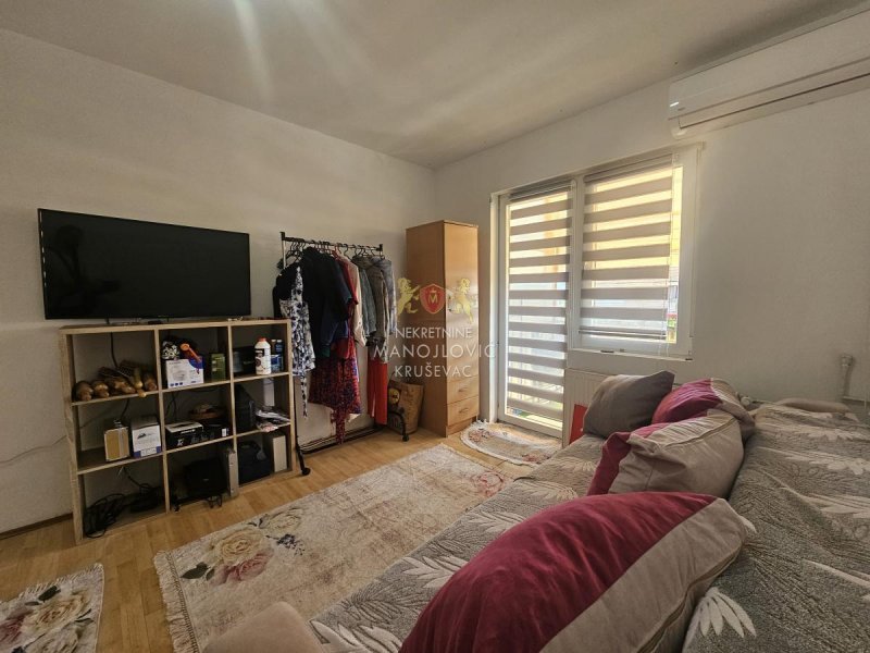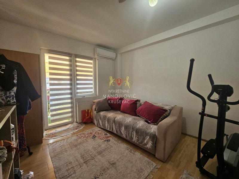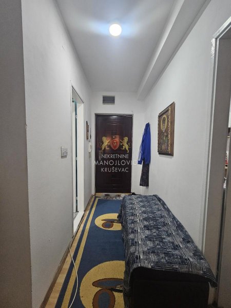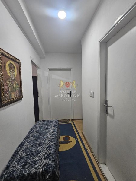 Zgrada je uredna i održavana, sa liftom, a okruženje nudi sve što je potrebno za svakodnevni život: markete, školu, vrtić, park, sportske sadržaje, kao i odličnu povezanost sa centrom grada i drugim delovima Kruševca.
