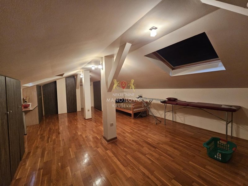 * Gornji nivo: veliko kupatilo i jedna velika prostorija koja može biti master spavaća soba, radna soba, fitnes, igraonica…