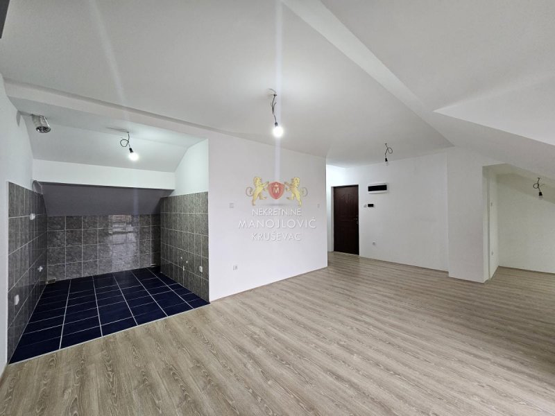 Sastoji se od veoma velike prostorije sa uvučenom kuhinjom sa ostavom koju je moguće odvojiti zidom, veoma velikog kupatila sa još jednom velikom ostavom i velike terase za uživanje.