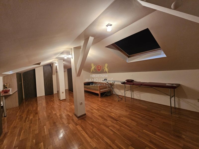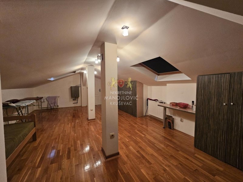* Gornji nivo: veliko kupatilo i jedna velika prostorija koja može biti master spavaća soba, radna soba, fitnes, igraonica…